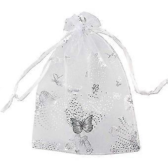 100 Pcs White Butterfly Organza Jewelry Gift Pouch Favor Bags - 9x12 cm Sheer Bags for Weddings, Parties & Special Occasions