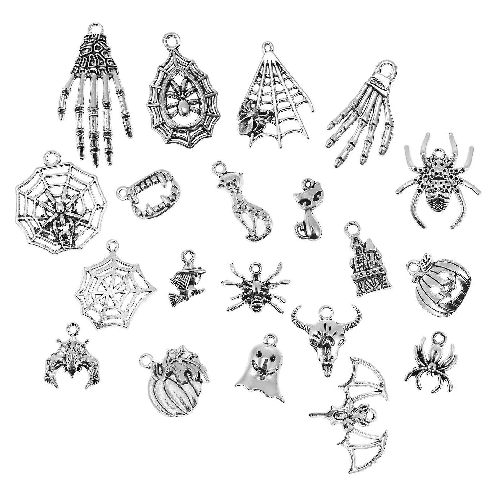 100Pcs Halloween Pendant Charms Diy Jewelry Making Accessories Silver Alloy for Celebrations
