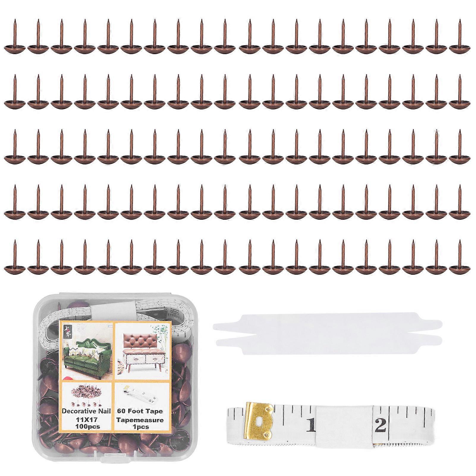 100 Pcs Furniture Decorative Nail Carbon Steel Antique Sofa Bed Decorative Tack with Tape Measure and Bracket Purple Bronze