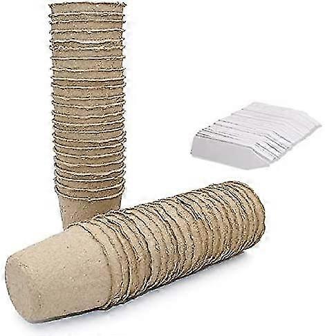 100 Pcs 6 Cm Small Round Fibre Pots Biodegradable Seed Seedling Pots With 100 Pcs Plastic