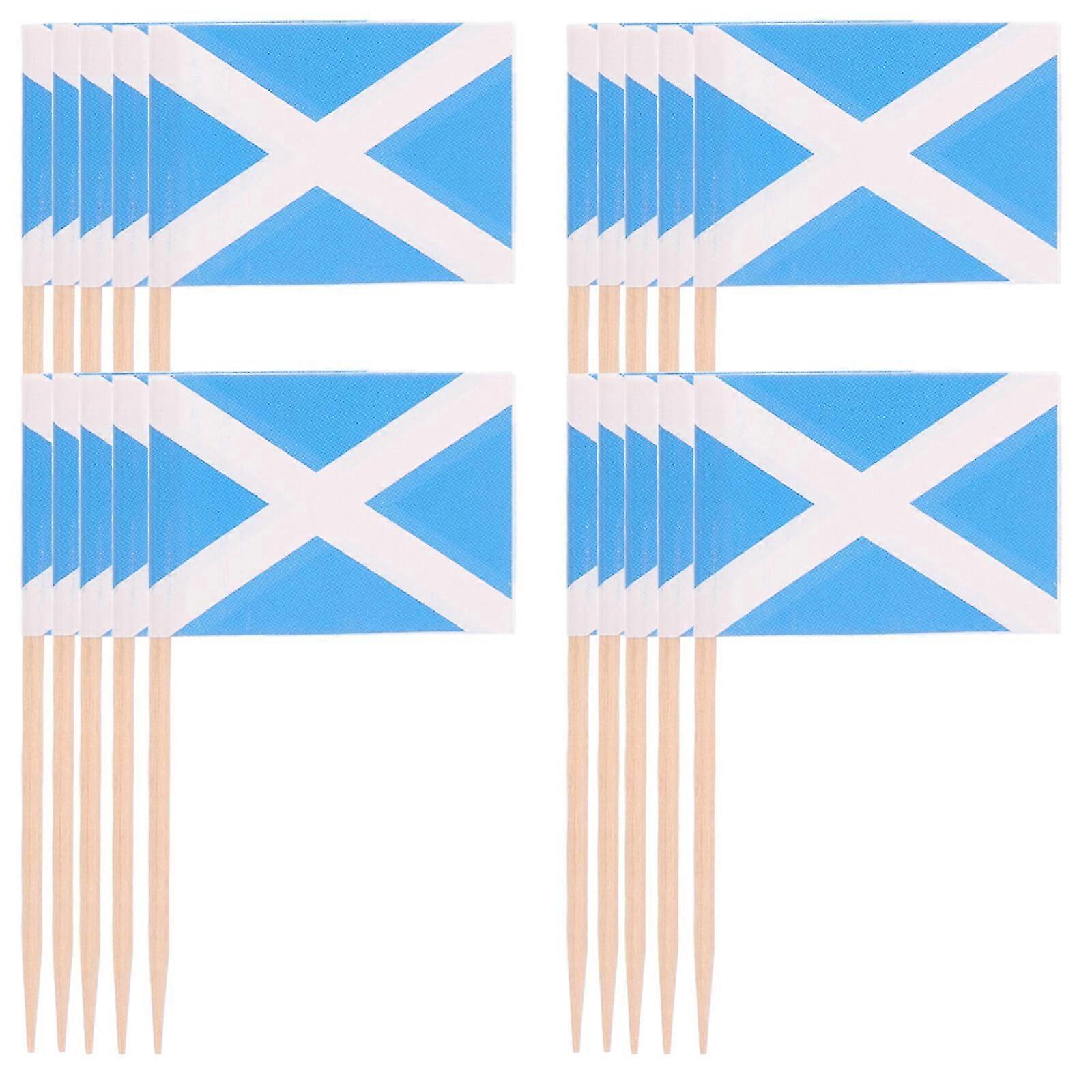 100pcs Scotland Flag Wooden Toothpicks Decoration Cupcake Toppers Food Toothpick for Party Decor (Thailand)