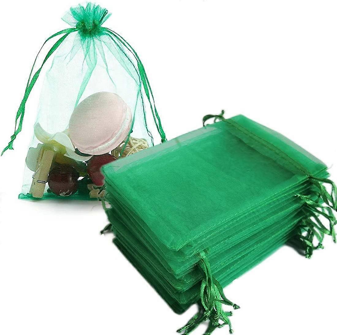 100 Count Gift Organza Bags 5X7 Green Inch Drawstring Rope Sheer Fabric Travel