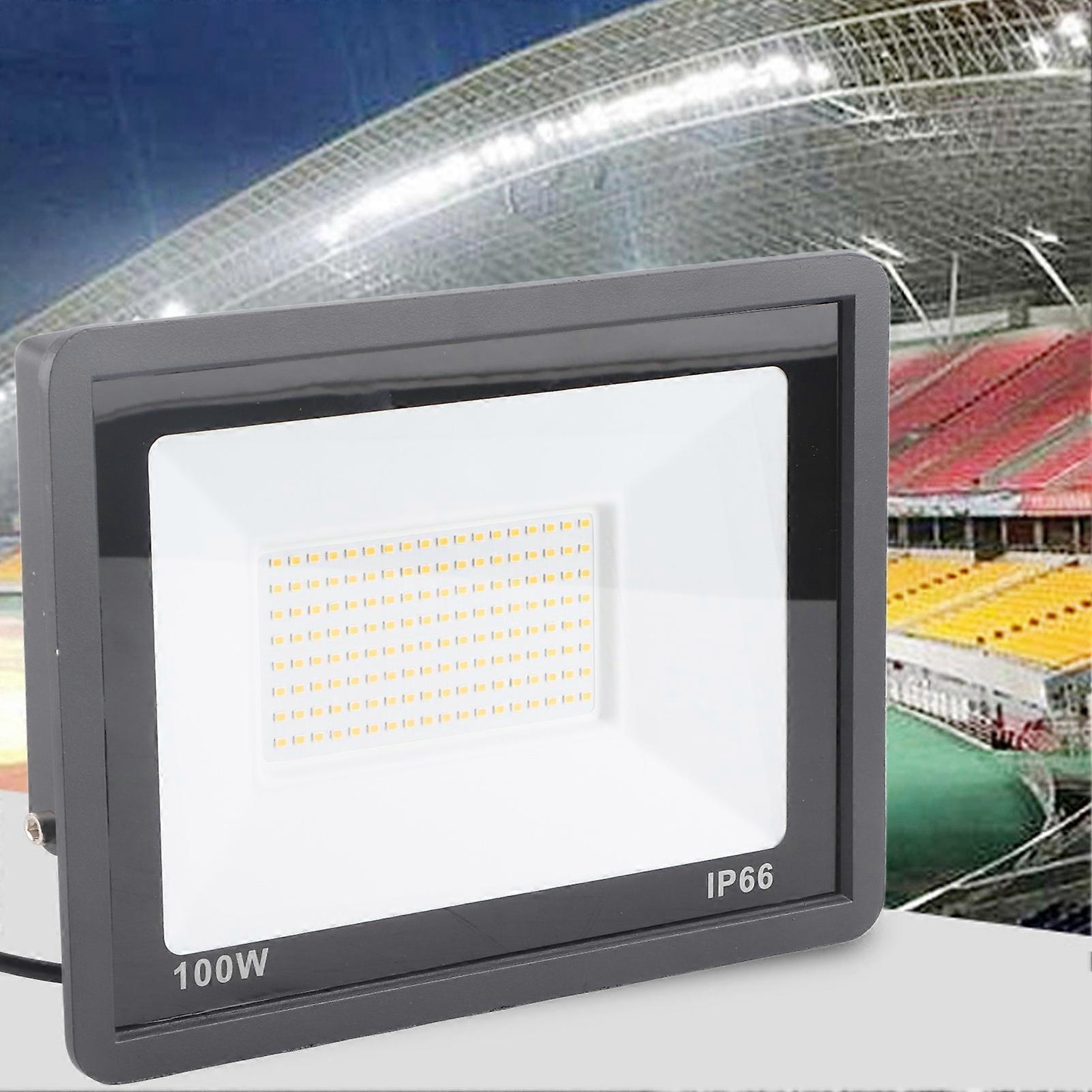 100W LED Floodlight 3000K Warm White IP65 Waterproof Flood Lights Outdoor with Tempered Glass Cover for Courtyard