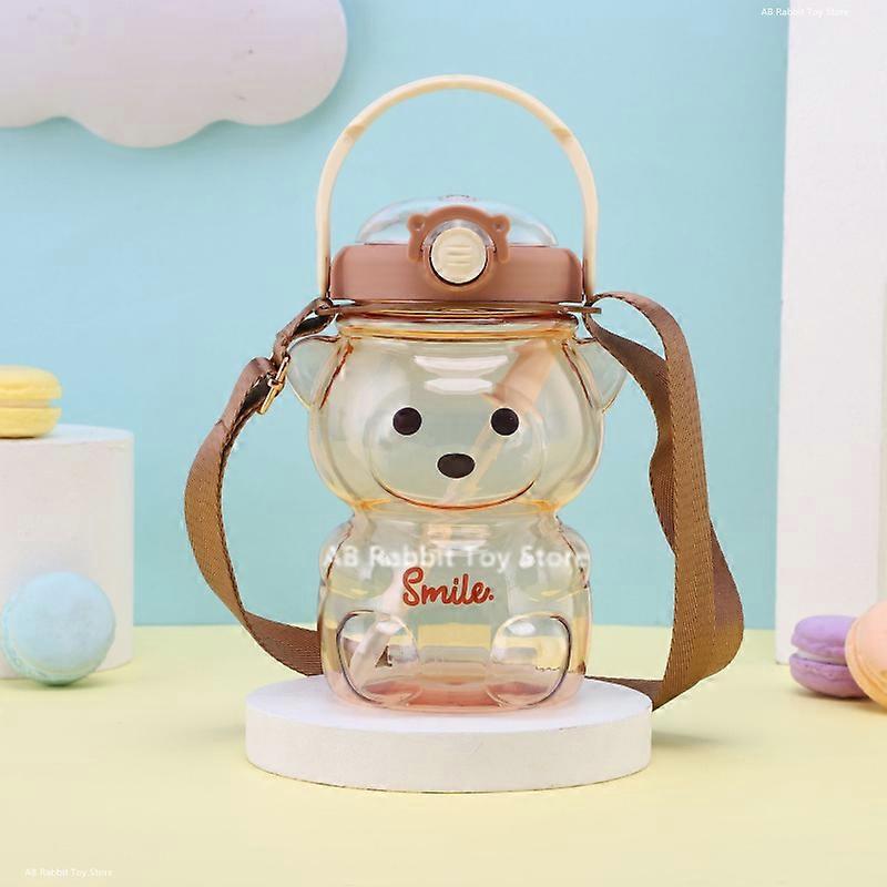 1000ML Children Water Bottle Kawaii Cute Bear Kettle with Straw Outdoors Portable Plastic Drinking Bottle Summer Drinkware Gift