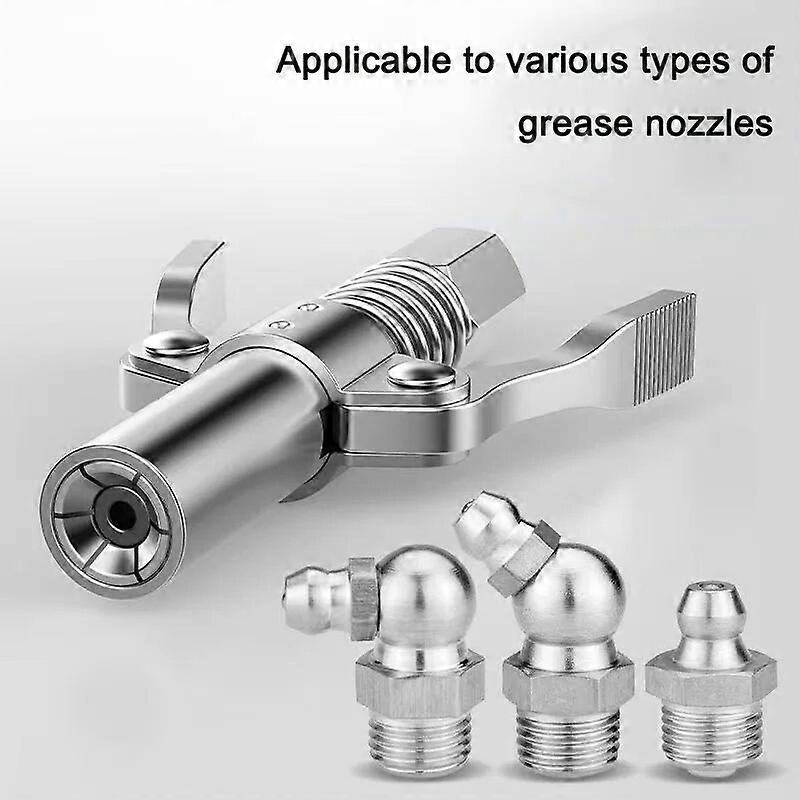 10000 PSI Grease Tool Coupler Heavy~Duty Quick Lock and Release Double Handle Stainless Steel NPTI/8 Leak~Free Grease Tool Tip ST1M257