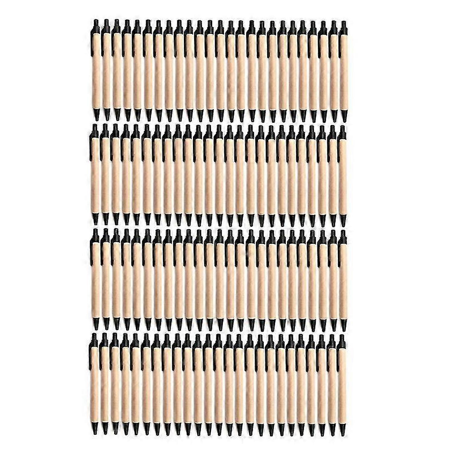 100Pack Ballpoint Pen Retractable Ballpoint Pen,Black Ink Click Pens Recycled Kraft Paper Pens for O