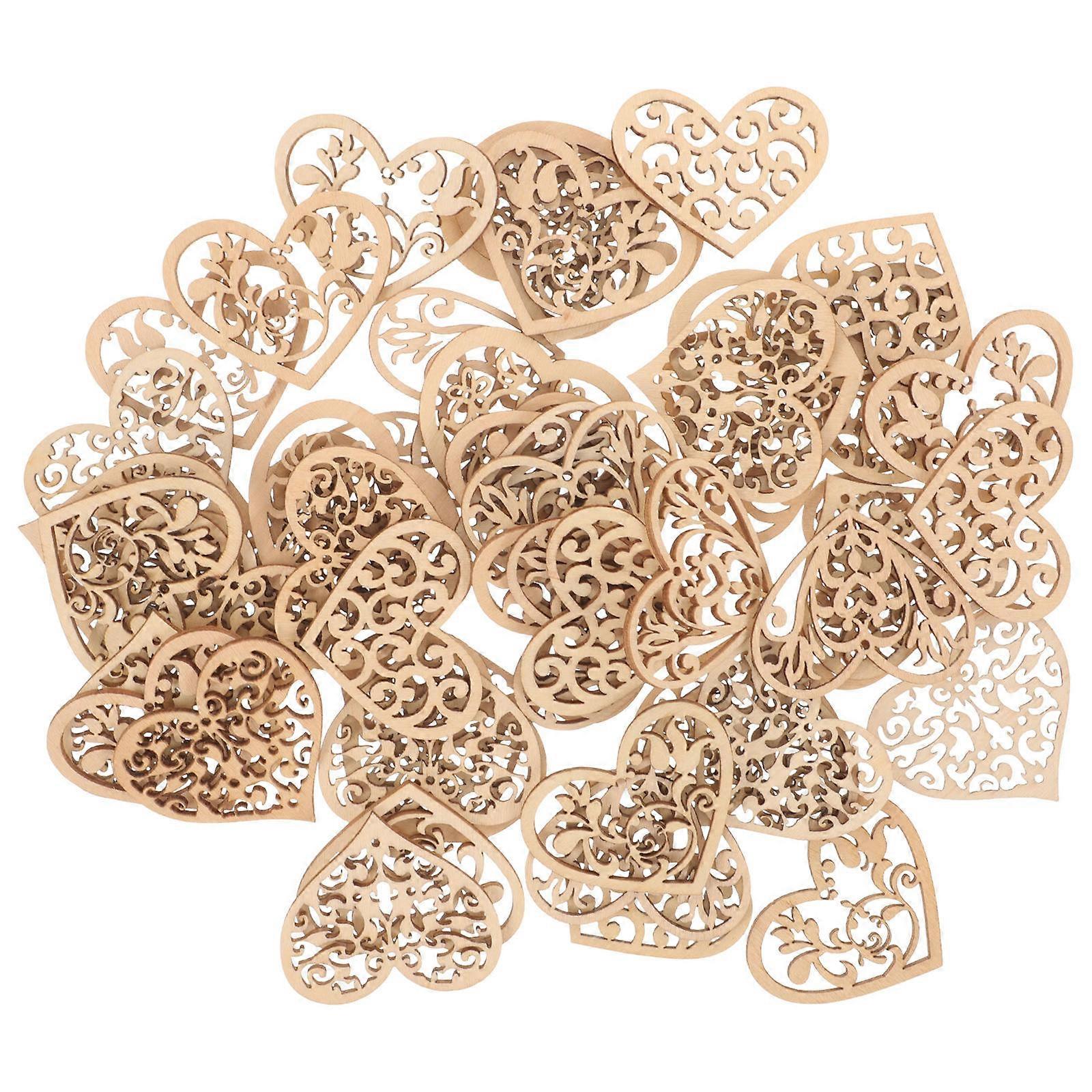 100pcs Love Heart Shape Wooden Pieces Creative DIY Flower Wood Crafts Hollow Out Home Decor Wood Chips (Random Style)