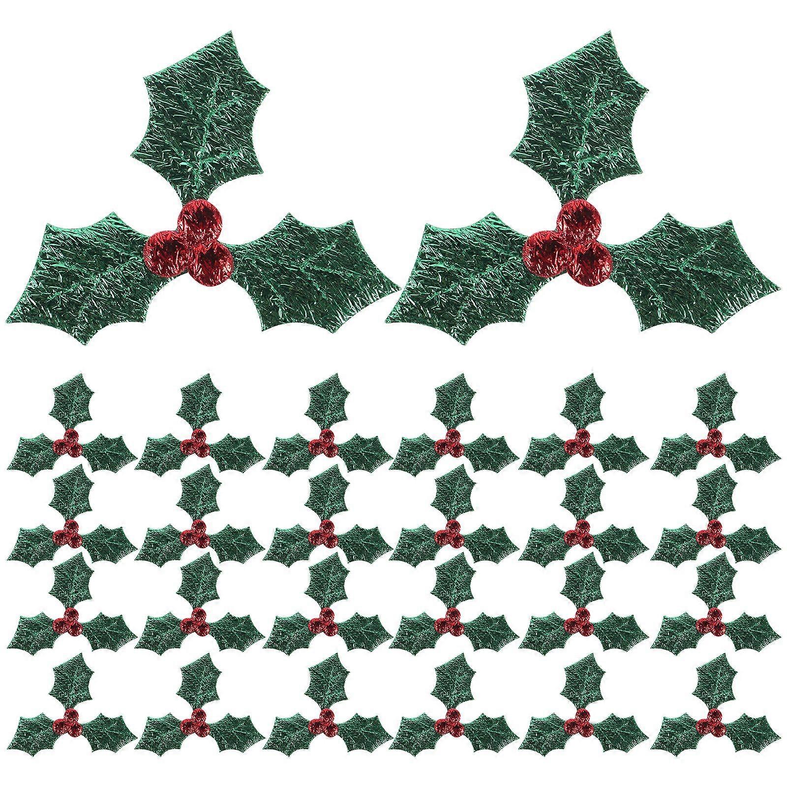 100pcs Creative Christmas Artificial Berry Green Leaf Pick Plant Costume Headdress Decoration Accessories for DIY Hanging Ornament (Green, 5CM)