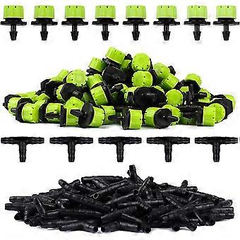 100pcs ירוק מתכוונן טפטף השקיה + 100pcstee צינור משותף מערכת השקיה טפטוף אוטומטי מיקרו ממטרות מטפטפות לחממה צמחית Diy Ga