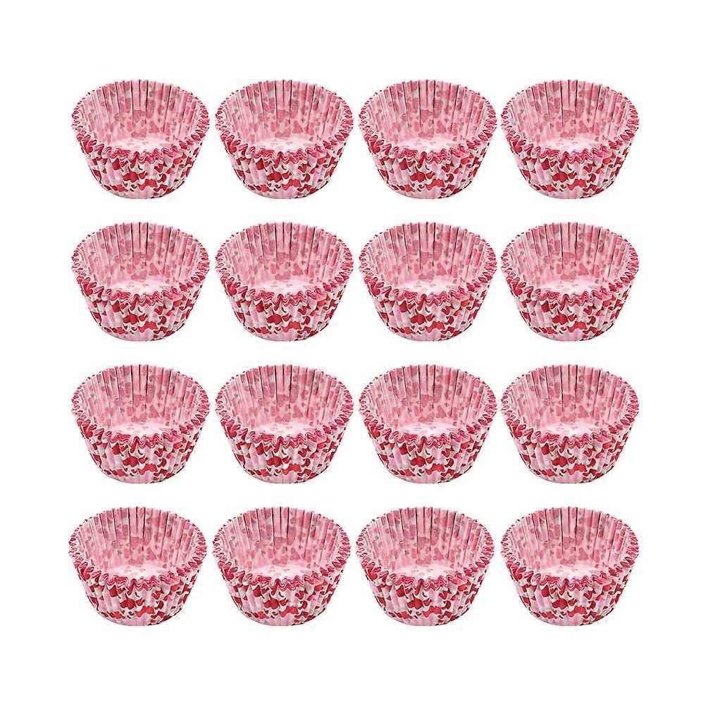 100PCS Baking Cake Paper Cups Heart-shaped Printing Cake Paper Mould Valentine's Day Cake Paper Cups Oil Proof Cake Paper Tray for Home Store Use