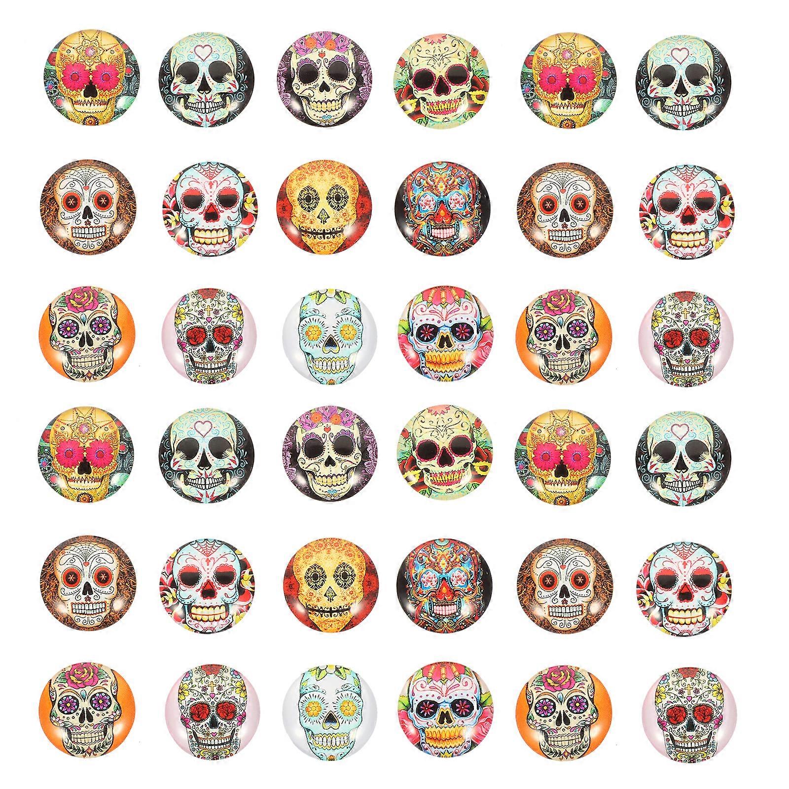 100pcs Round DIY Glass Dome Skull Pattern Gemstone Cabochons DIY Crafts Cabochons