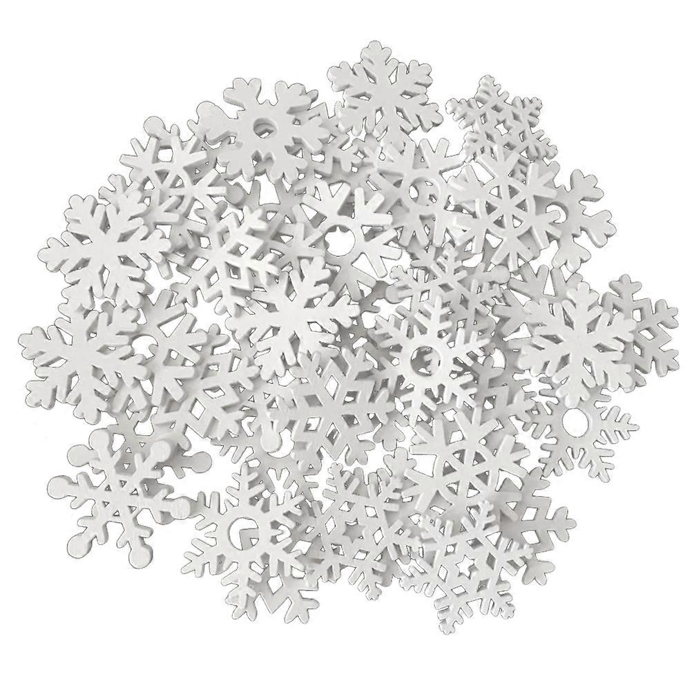 100pcs Wooden Snowflake Slices Creative Adorable Xmas Hanging Ornament Decoration Craft for Christmas Party Wedding Festival (White)