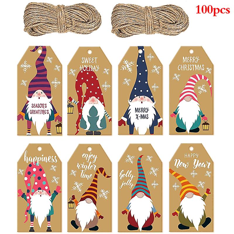100pcs Merry Christmas Gift Tags Kraft Paper Card Hang Tag Gift Bags Decoration