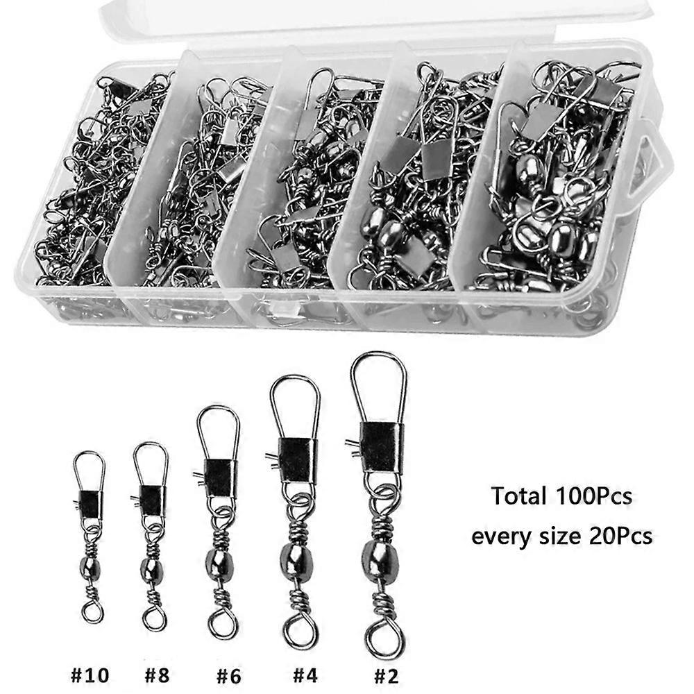 100Pcs Box Metal Fishing Rolling Ball Bearing Barrel Swivels Safety Snap Connector Fishing Accessori