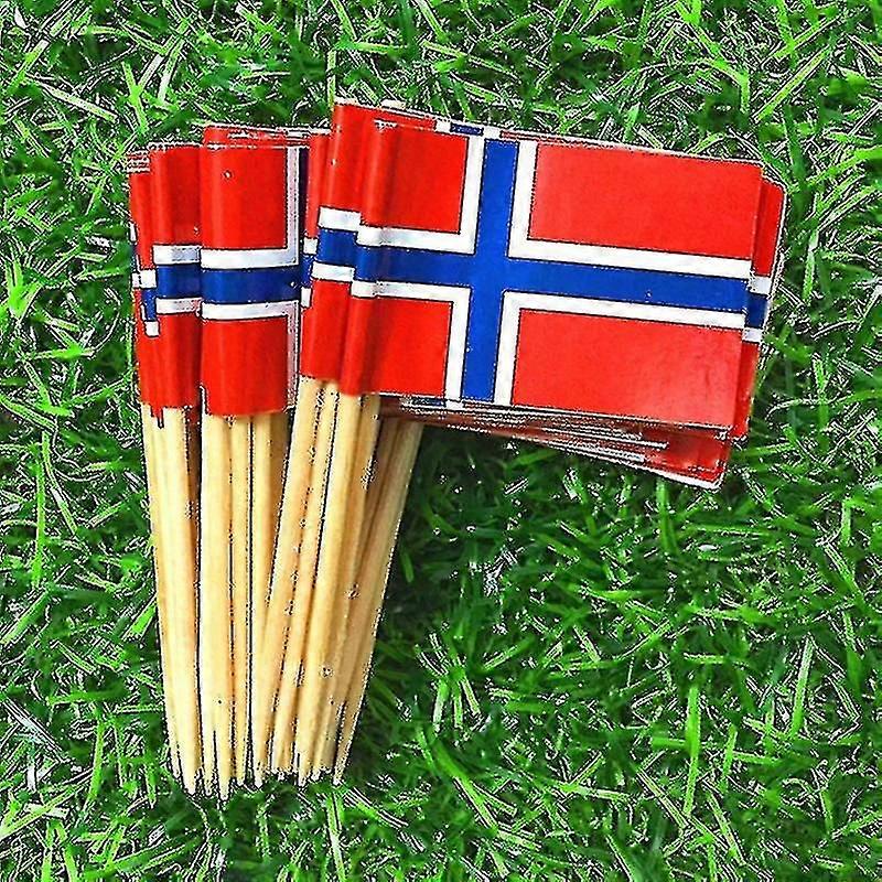 100pcs/set Mini Norwegian Flag Cake Cocktail Toothpick Stick Party Bar Restaurant Accessory Flag Of Norway -bp