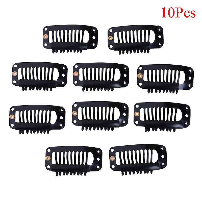 10/100 Toupee Wig Clips Snap Clips W/ Rubber Back Hair Extension Black 9 Teeth