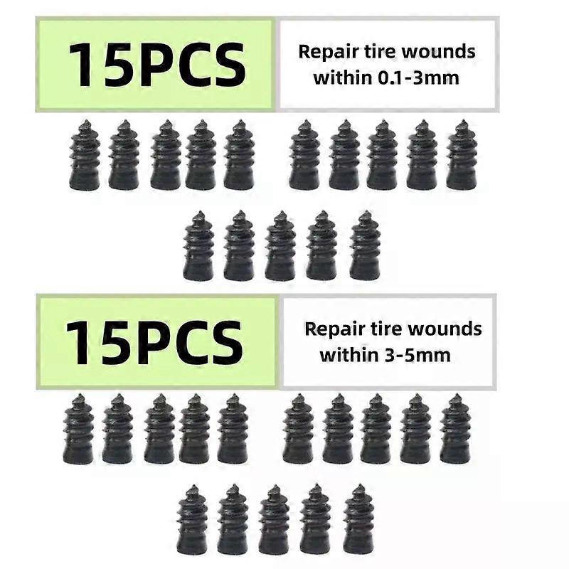 Hign-concerned Chemical:NoneGLUE:GLUEOrigin:Mainland ChinaItem Type:Tire Repair Tools10/30PCs car tyre repair rubber nail set universal car motorcycle tyre repair nails truck scooter bike tire puncture repair tool Specification: Product name: tire repair rubber nails Colour: Black Purpose: Tire repair Scope of application: Small size: can fill up the breach within 0.1mm-3mm Large size: can fill up the breach within 3mm-5mm Material: Rubber Size: Large size is about 5.3*11.7cm, small size is about 6.8*12.7cm Describe: 1. It can fill up the gap with the inner diameter less than 5mm without damaging the tire and leaking air. Simply insert the nail into the tire wound to complete simple and efficient tire repair work. 2. It fits closely to the tire, has high connection strength and good sealing performance, prevents water from entering the wound, and prevents the steel belt from rusting and delamination. 3. Easy to operate, easy to install with this tire repair nail, repair the tire by yourself, no need to find an auto repair shop, economical and time-saving. 4. Made of high-quality rubber, it has the characteristics of high temperature resistance, high hardness and high wear resistance. It has a long service life, it can be repaired once, no second repair is required. 5. Widely used, professional puncture repair nails, can be used for automobiles, motorcycles, trucks, buses and agricultural tires. The package includes: 10/30 * Tire Repair Rubber Nail