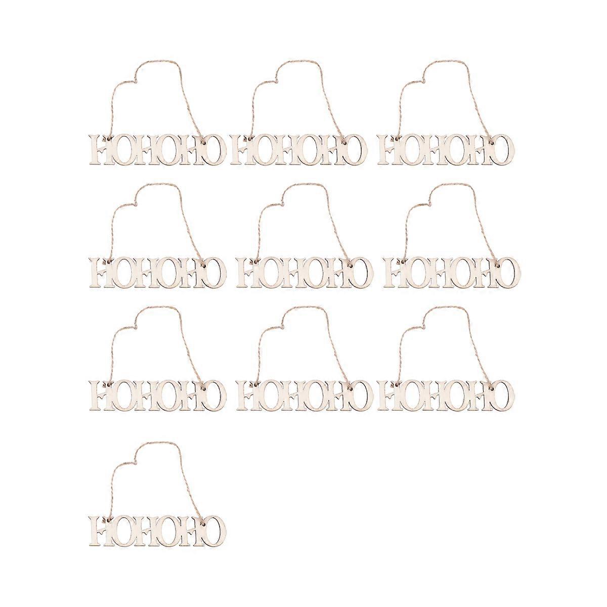 10pcs Letter HO Design Hanging Pendant Christmas Wooden Hanging Tag Decor Decorative Props Christmas Supplies with Hemp Rope for Tree Home Garden Yard