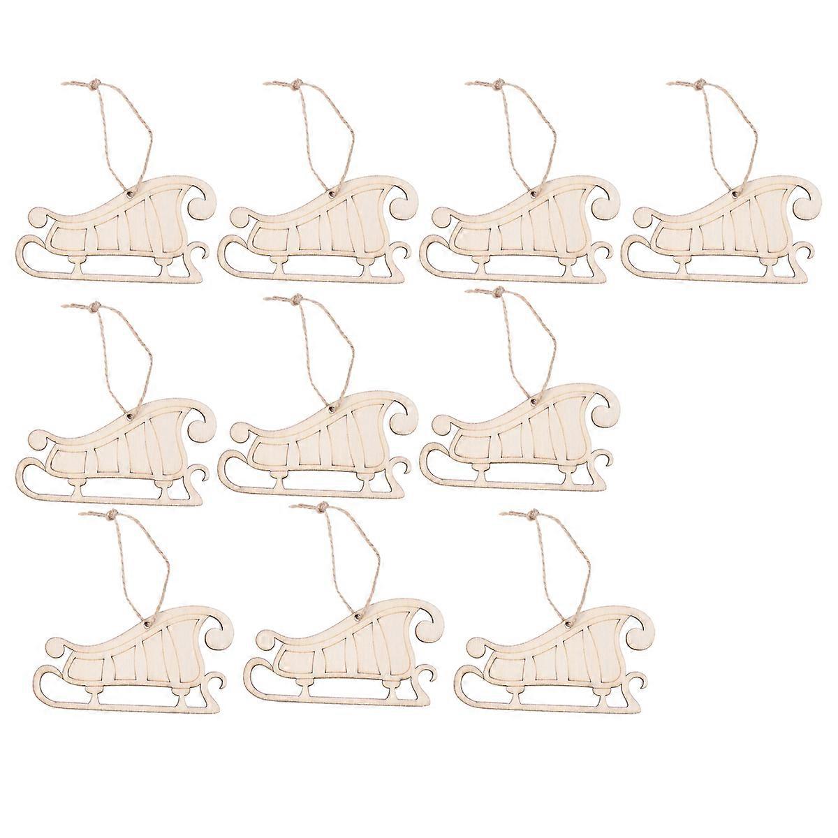 10pcs Christmas Hanging Pendant Decor Creative Santa Sled Design Wooden Hanging Tag Decorative Props Christmas Supplies with Hemp Rope for Tree Home G