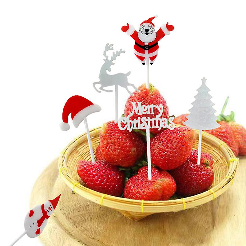 10pcs Cute Mini Santa Elk Tree Cartoon Cake Dessert Fruit Forks Accessories