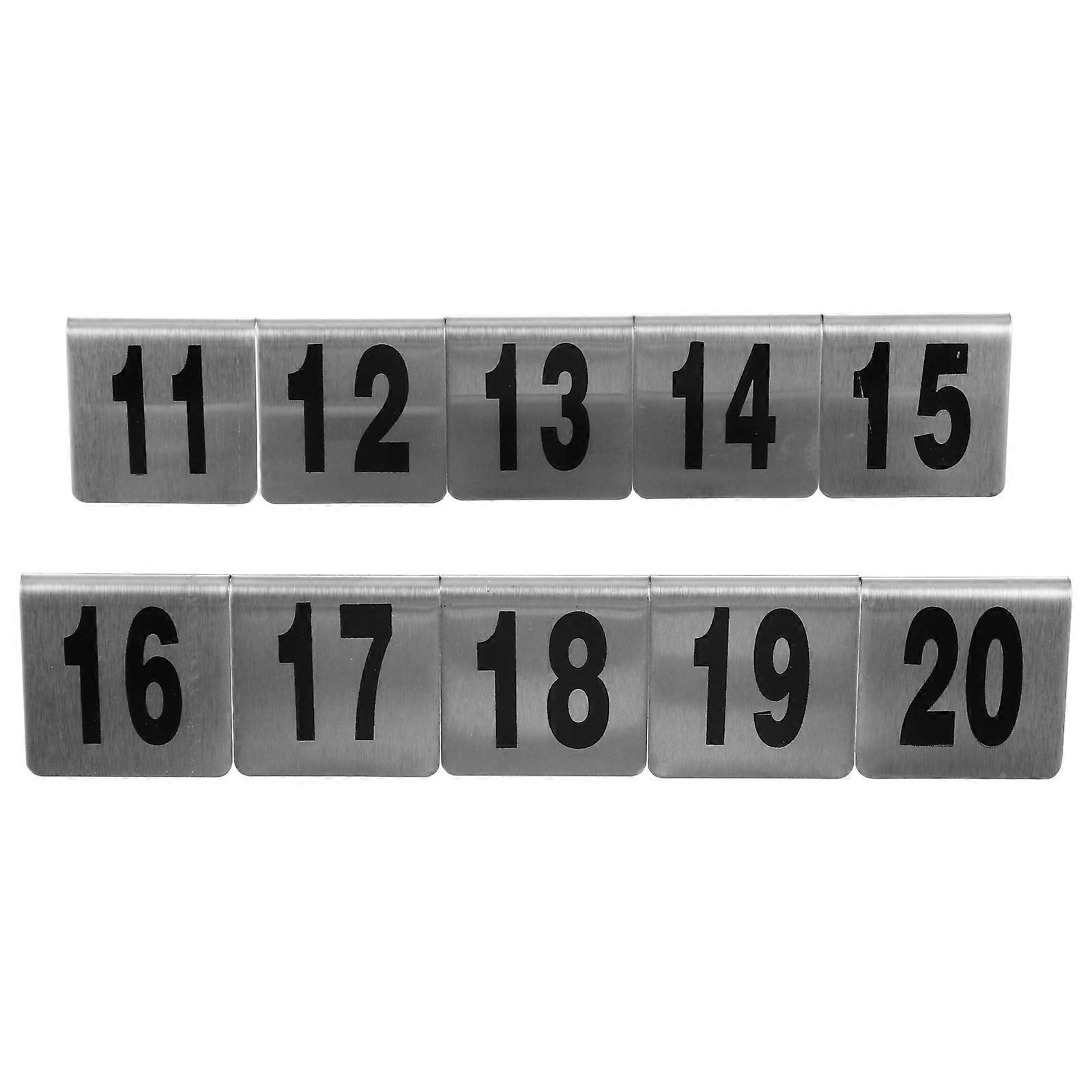 10pcs Practical Tabletop Number Sign Stainless Steel Number Plates (11-20)