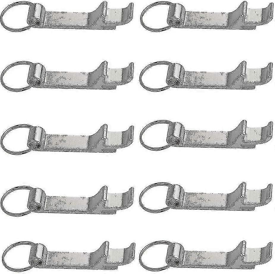 TH 10 Mini Beer Openers, Lightweight and Durable Easy to carry, can be put into the pocket, easy to use Multifunctional aluminum bottle opener for pop s, soda cans and metal caps Use the keychain loop over the key. Color: silver Product specification: 6.5*1.2cm Packing List: 10* Bottle Opener Keychain