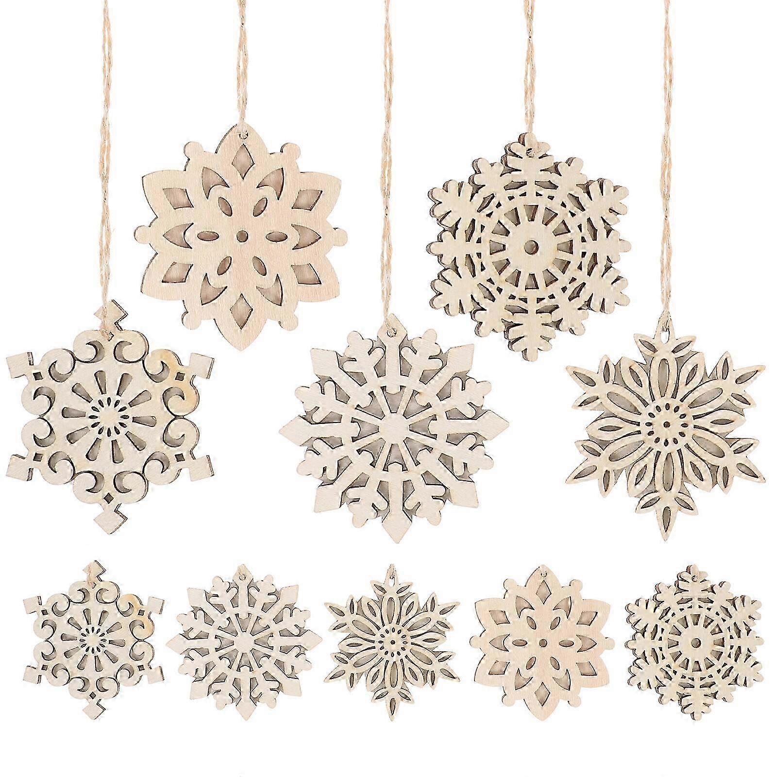 10pcs DIY Painting Wood Pendants Unfinished Blank Graffiti Xmas Hanging Ornaments