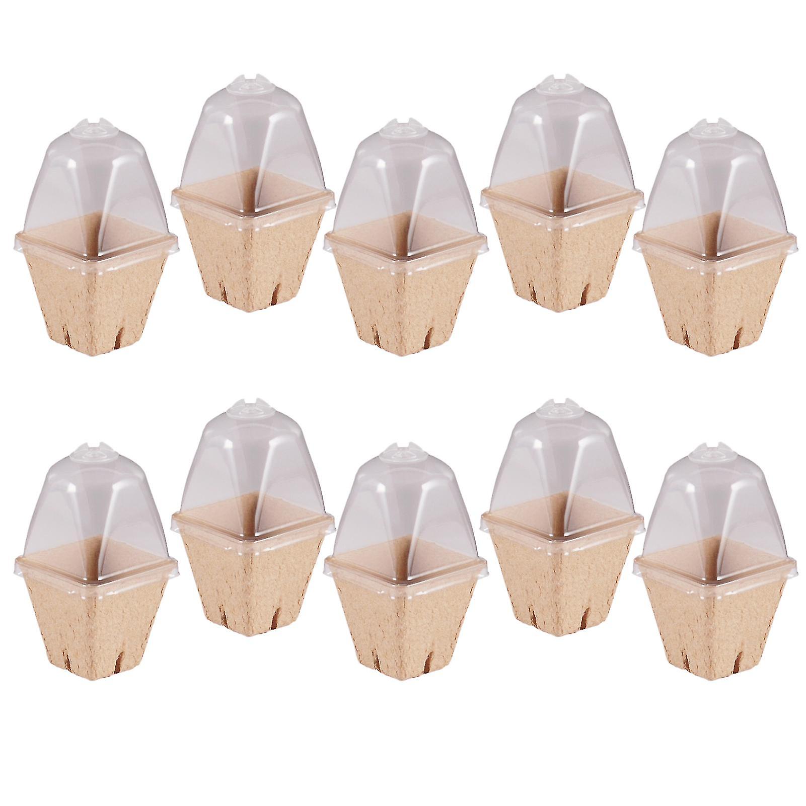 10pcs Pulp Plant Cup Biodegradable Ventilation Holes Disposable With Lid Nursery Home Cultivation Pulp Mould Plant Starter Pot Home Supply