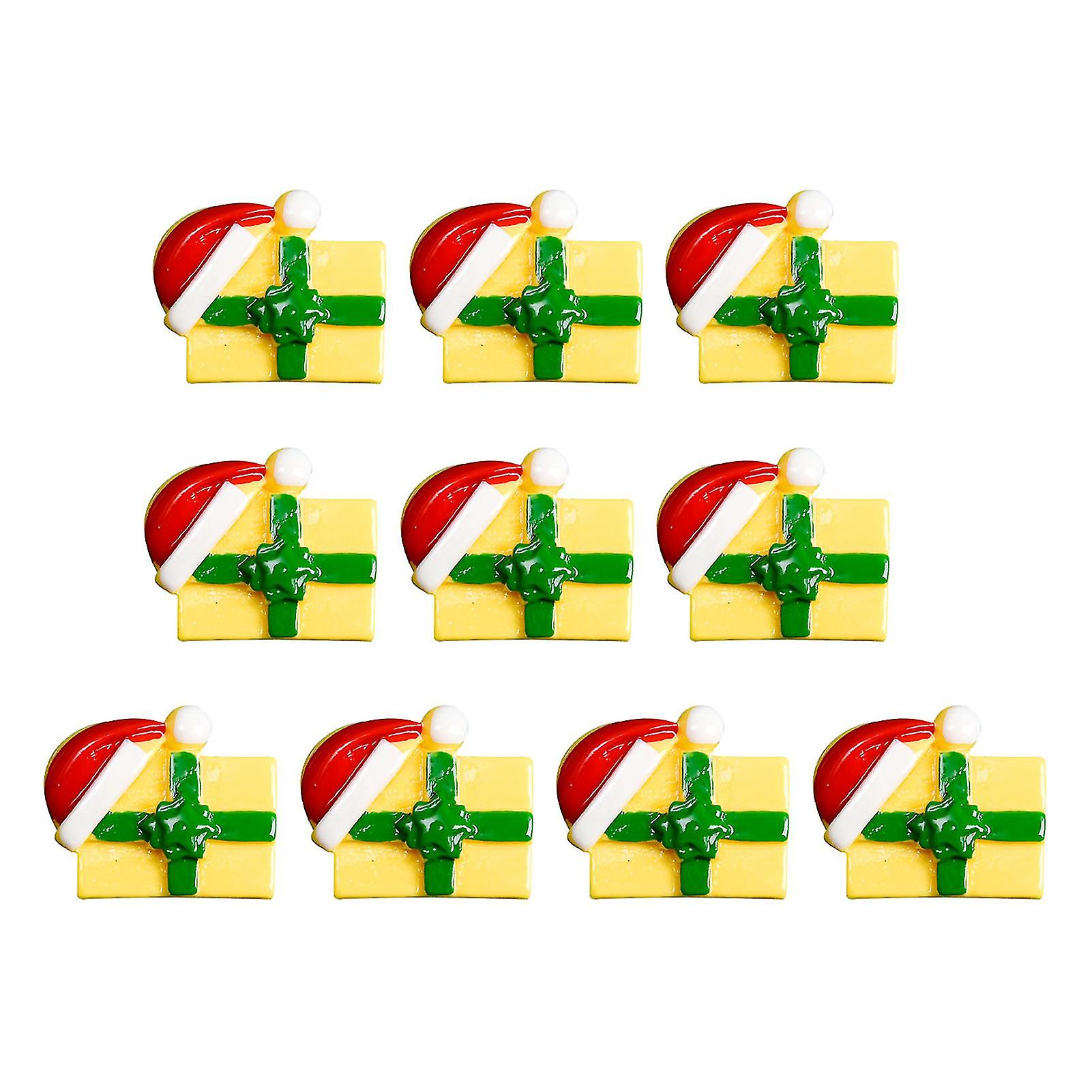 10pcs Christmas Charms Handmade Material Lovely Flat Back Christmas Hat Gift Box Ornament Multi-use Christmas Jewelry Crafts Making Resin Accessories