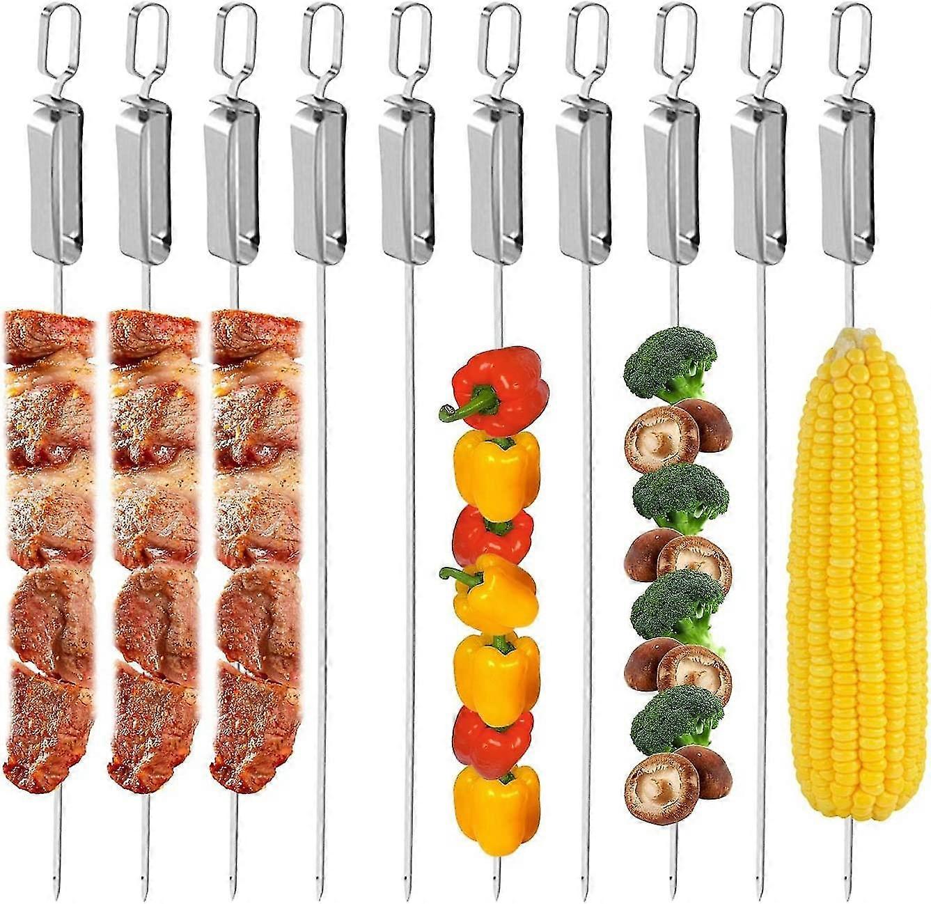 10pcs Bbq Skewers, Reusable Stainless Steel Kabob Skewers For Barbecue Grilling With Metal Sliding Handle, Barbecue Kabob Sticks