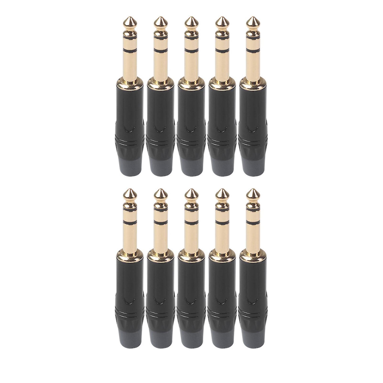 10pcs Golden Plated Plug Stable Output Audio Transfer Zinc Alloy Dual Channel 6.35mm Electric Guitar Audio Welding Diy Plug For Office