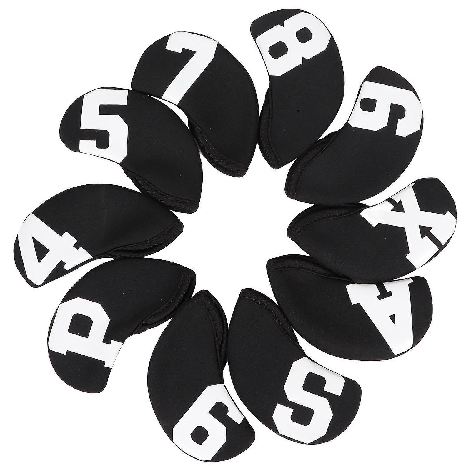 10pcs/set Number Golf Iron Head Cover Set Neoprene Golf Club Iron Protective Headcoverwhite Words On Black Background