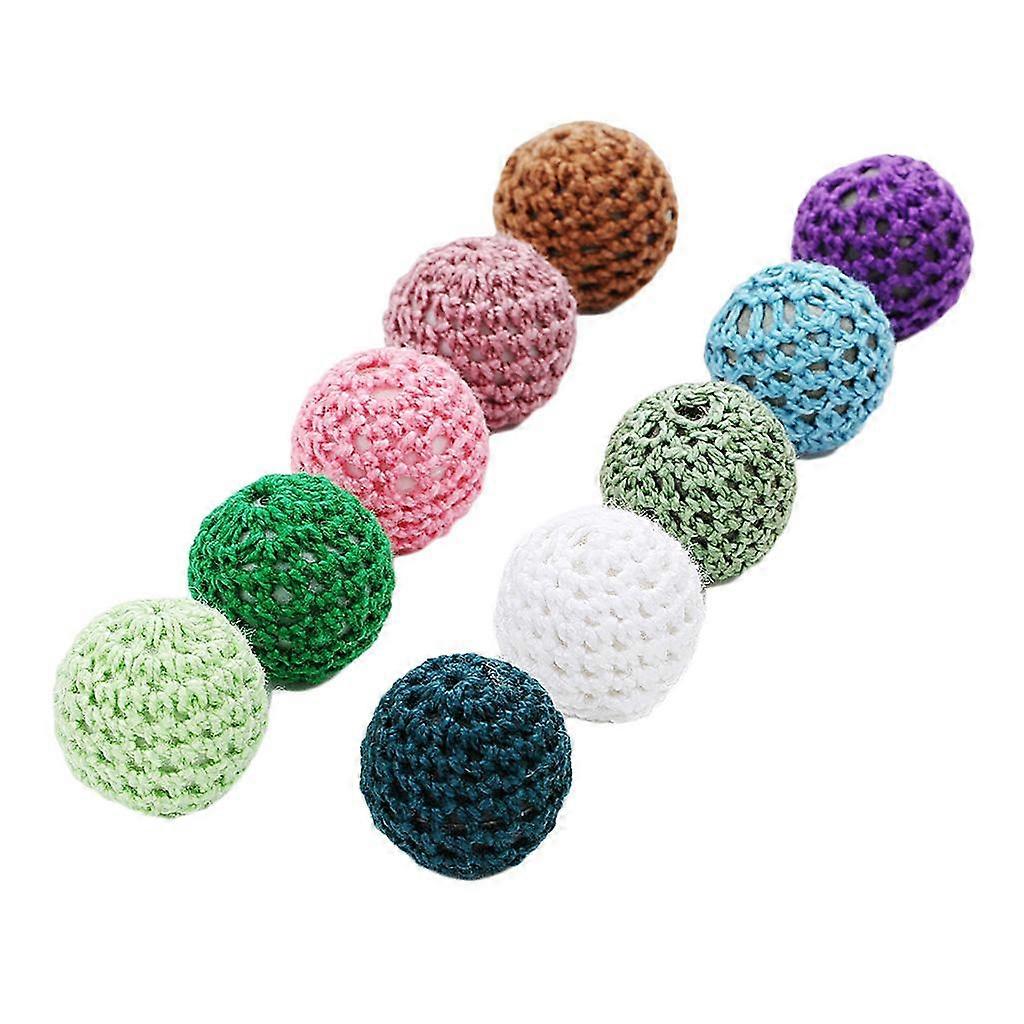 10x Mixed Colors Crochet Acrylic Round beads 15mm knitted DIY jewellery toys