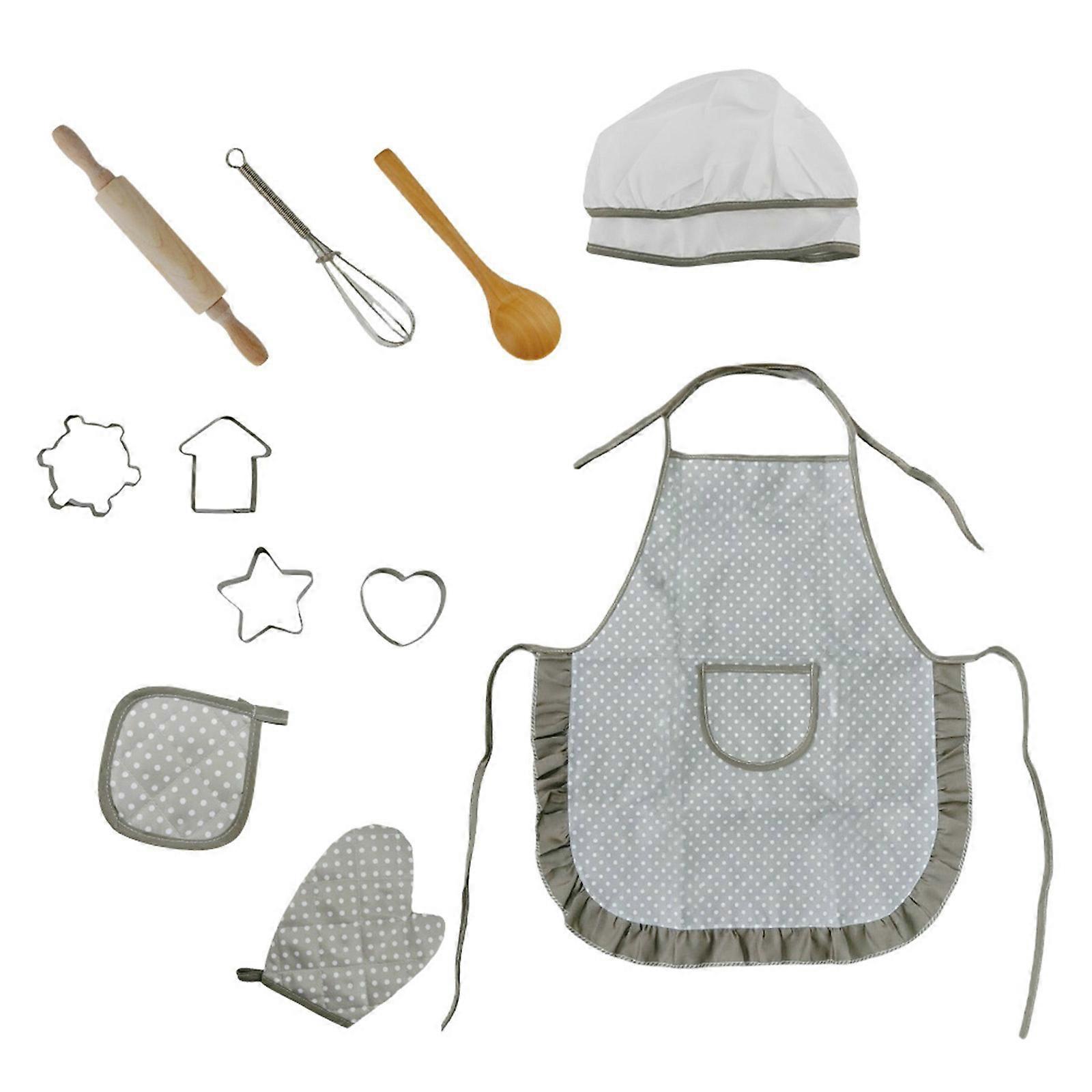 11Pcs Kids Pretend Play Baking Apron Set With Kitchen Tool For Toddler Role Play Learning And Creative Cooking Game Multicolor