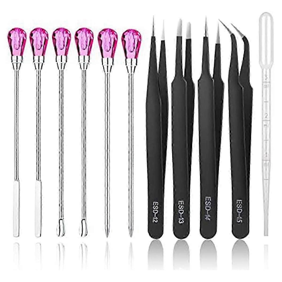 [11 pieces of cutting resin tools]: Our metal resin stirring rod includes 2 stirring rods, 2 resin spoons, 2 thorns, 4 epoxy resin tweezers, and 1 shift pipe. These ultraviolet resin tools are enough to meet your and use. They will become a practical assistant for your DIY resin work. Note: If the pink gem is loose. As long as a simple reversal, they are very good.
