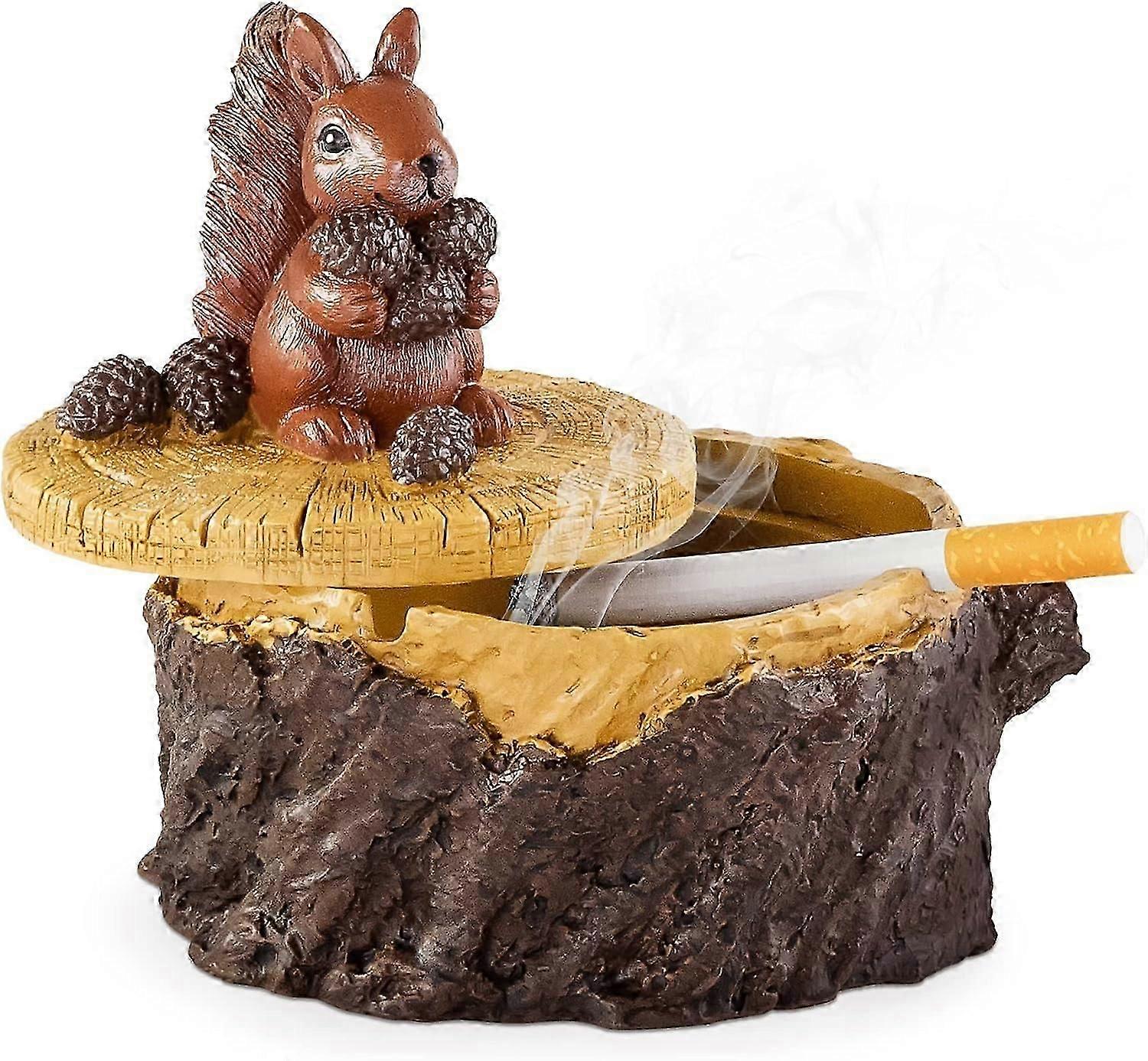 Outdoor Ashtrays for Cigarettes Cute Resin Squirrel Ashtray with Lid for Home and Garden (11*11cm)