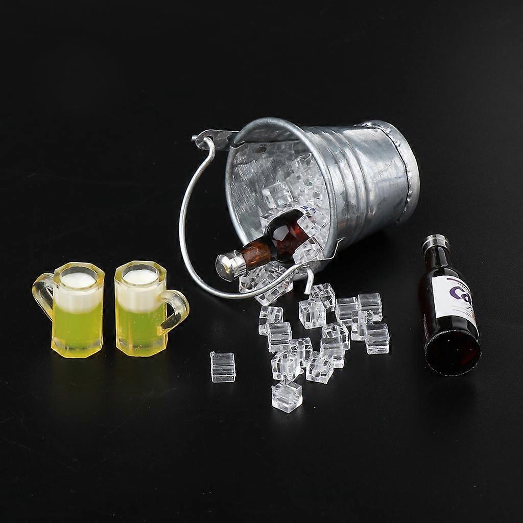 1/12 Ice Bucket Beer Bottles Cups Model Set for Doll House Kitchen / Pub Bar Decor, Party Supplies, Kids Pretend Play Toys