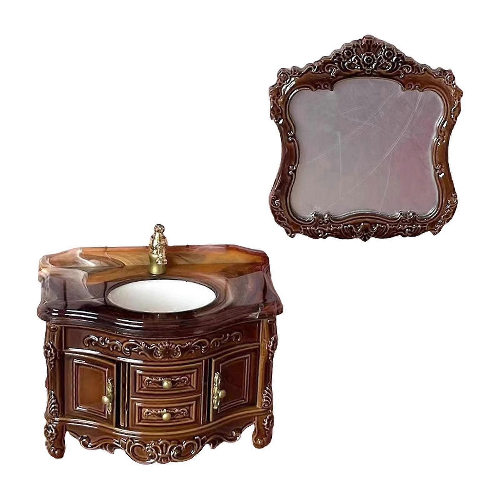 1:12 Bathroom Vanity with Drawer DIY Accs for DIY Model Micro Landscape Gift dark brown