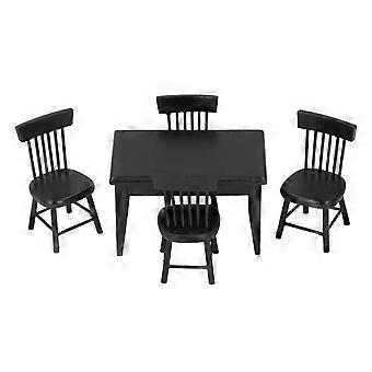1:12 Dollhouse Table Chair Set Black Wooden Miniature Furniture Accessories for Dining Room Scene
