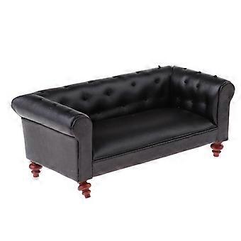 1/12 Dollhouse Furniture Vintage Leather Long Sofa Couch Miniature Model Sitting Room Accessories Decoration