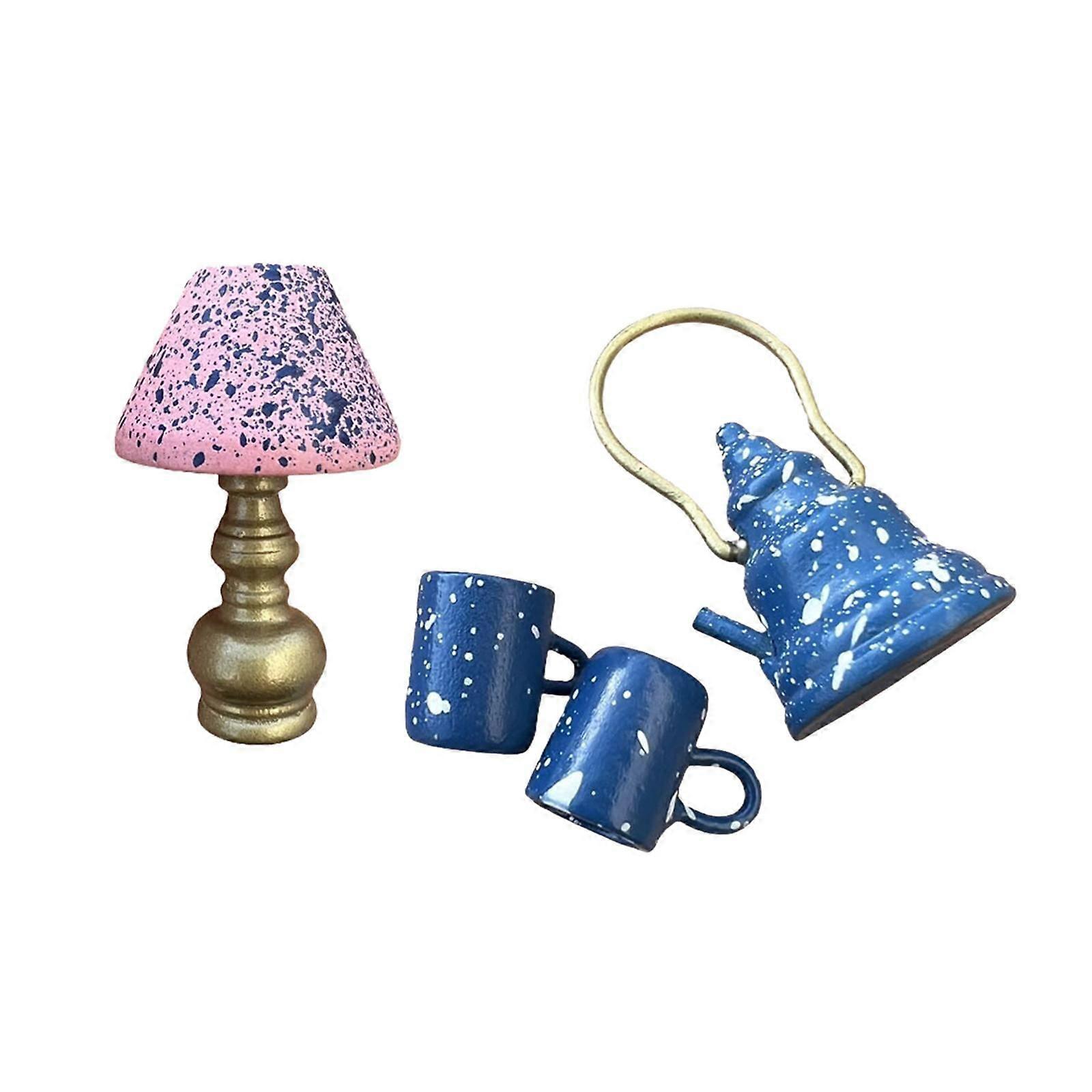 1/12 Dollhouse Miniature Lamp and Tea Set for Diorama Dollhouse Party Favors