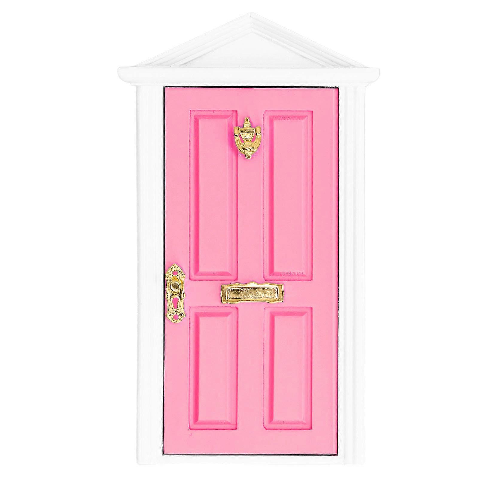 Mini Wooden Door Bright Color Vivid Details Smoother Edge Dollhouse Miniature Fairy Door for 1:12 Doll House GiftsLight Pink