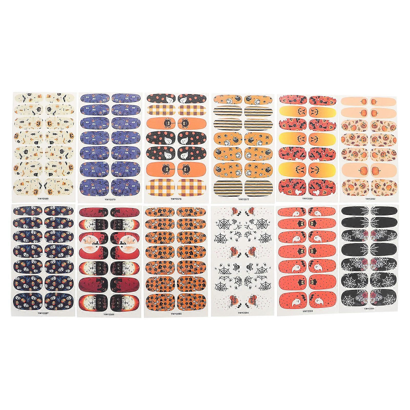 12 Sheets Halloween Nail Stickers Full Wrap Gothic Self Adhesive Nail Stickers