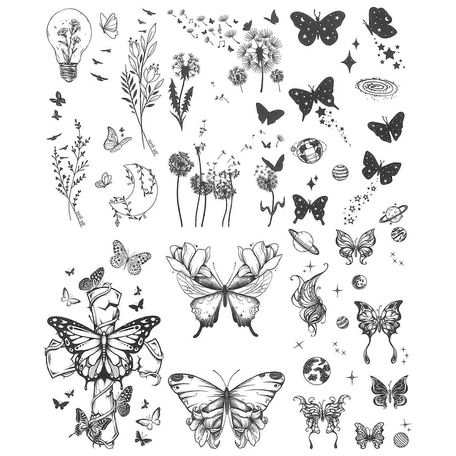 12 Sheets Butterfly Tattoos Flower Tattoos Stickers Temporary Tattoos Fake Tattoos