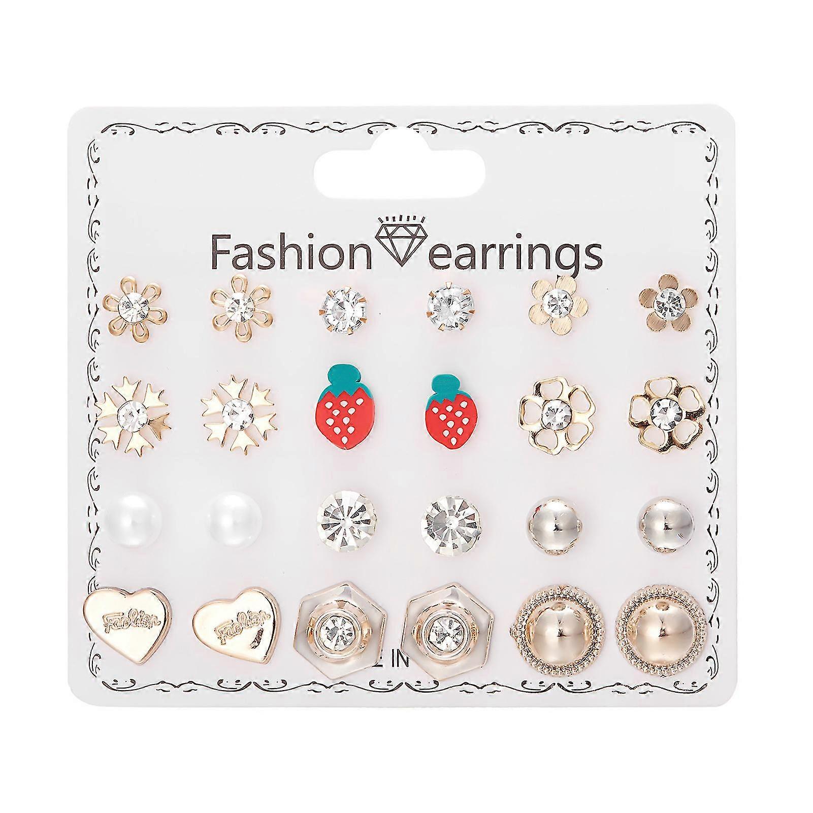 12 Pairs Sweet Rhinestone Stud Earring Temperament Versatile Ear Dangler For Women Girl