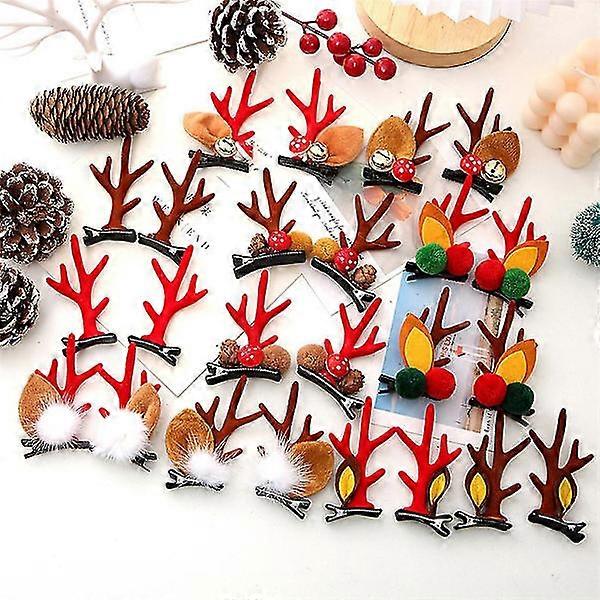 12 Pairs Christmas Hair Clips, Cute Reindeer