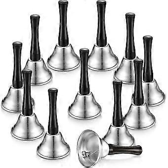 12 Pieces Metal Hand Bells Call Bell Service Hand Bells Black Wooden Handle Handbells Metal Handbell