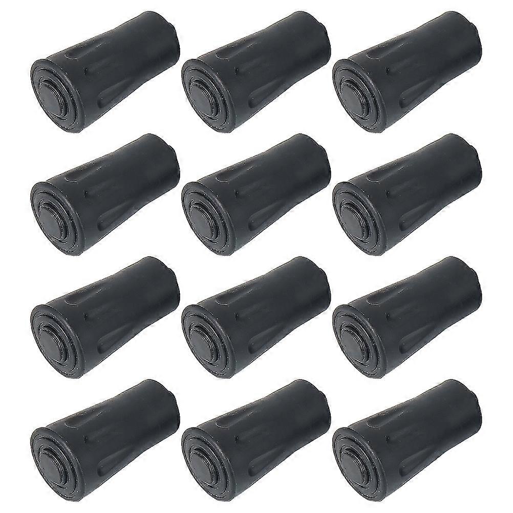 12pcs Supple Hiking Pole Tips Walking Stick Head Protectors Climbing Anti-slip Pads (Black)