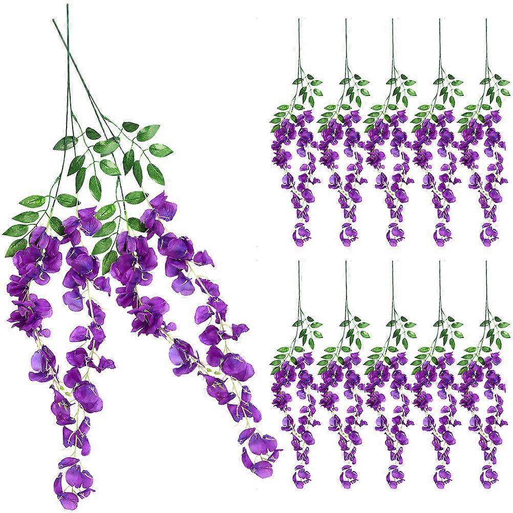12pcs Artificial Wisteria Fake Flowers Wall Decoration Deep Purple Hanging Garland Wedding Home Decor Lightweight Flexible Faux Vine Arrangement