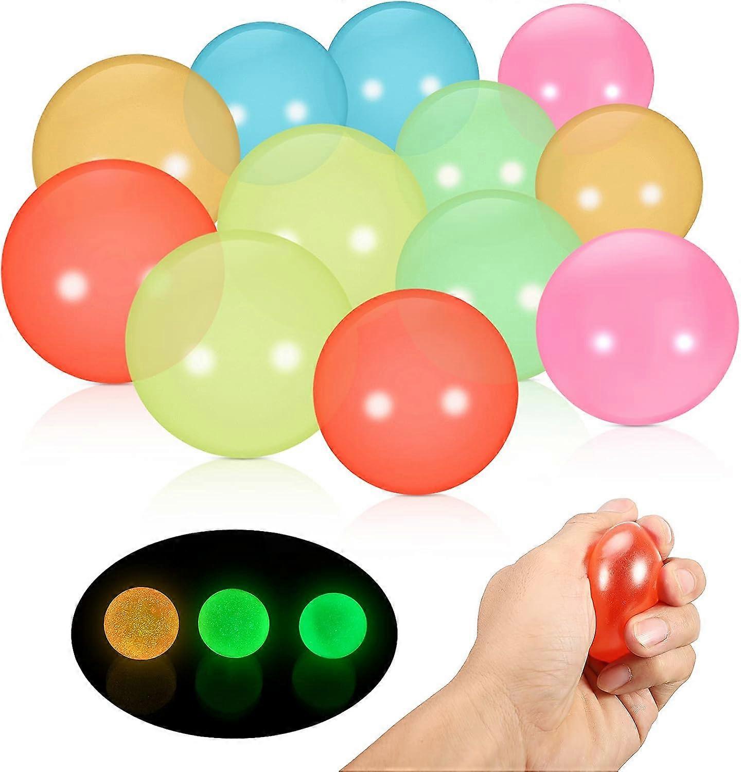 12 Pcs Glowing Ball Sticky Wall Ball Stress Relief Ceiling Glowing Sticky Ball Stress Relief